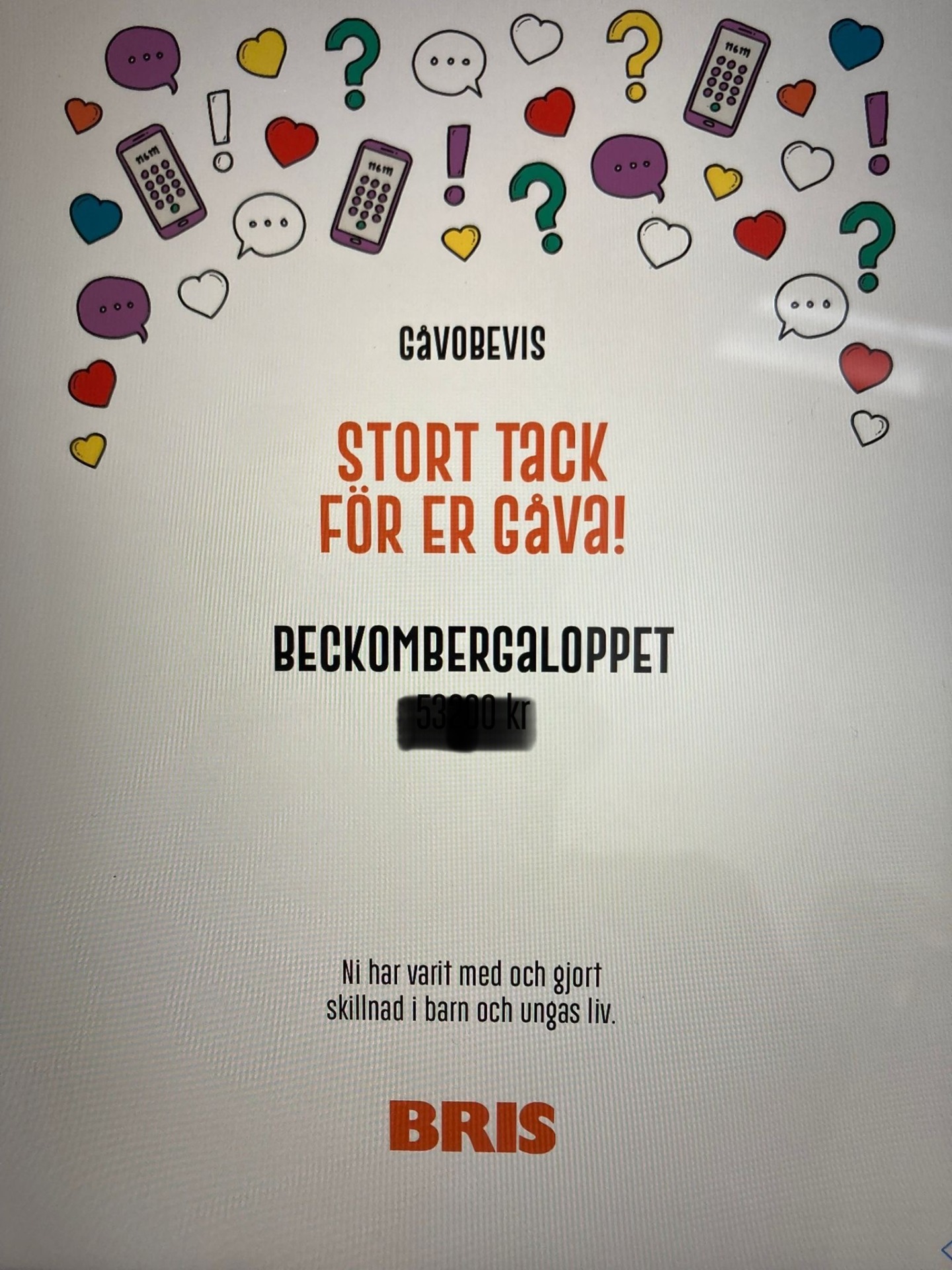 "Beckombergaloppet är en fantastisk välgörenhetsorganisation som verkligen gör skillnad. Jag har deltagit i deras lopp flera gånger och det är alltid en härlig upplevelse att springa för en god sak. Rekommenderar starkt att stödja denna organisation!"
